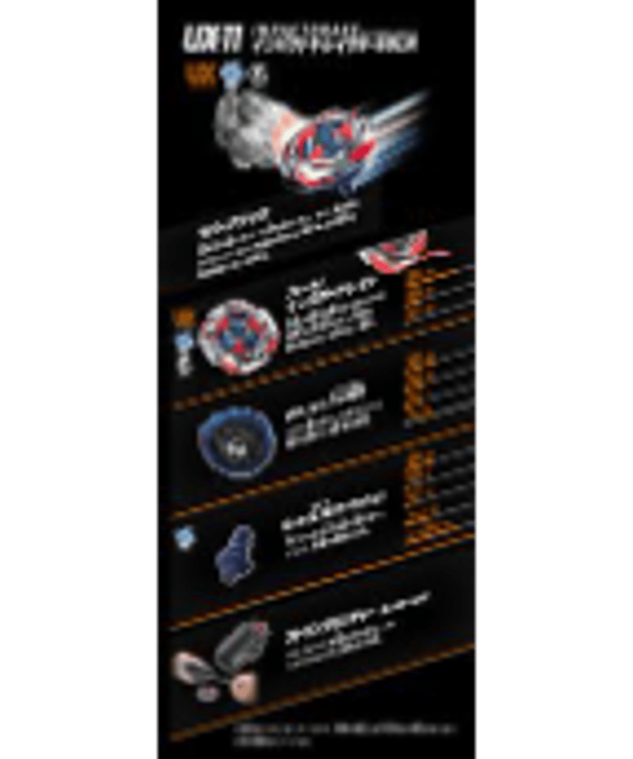 ブレードのメタルを外周に多く配分し、固有の性能に特化したユニークラインのベイブレード。 ブレードの刃の開閉ギミックと3段階の攻撃速度を持つビットの組み合わせにより、威力の高い「一撃」性能と威力を抑えた「連撃」性能を両立したベイブレード。 グリップ一体型でシュート時の安定性が高いホールドランチャー、通常のワインダーより長く強力なシュートが撃ちやすいロングワインダー、ラバー製でグリップの握りやすさを調整可能な4種類のラバーパネルが同梱。 ※この製品で遊ぶには別売りのベイブレードエックスシリーズ専用のスタジアムが必要です。 ※本製品はケガや破損の恐れがあり危険ですので他のシリーズ(バーストシリーズなど)と一緒に遊ぶことは絶対におやめください。 ※店頭にて併売しておりますので在庫が無い場合もございます。